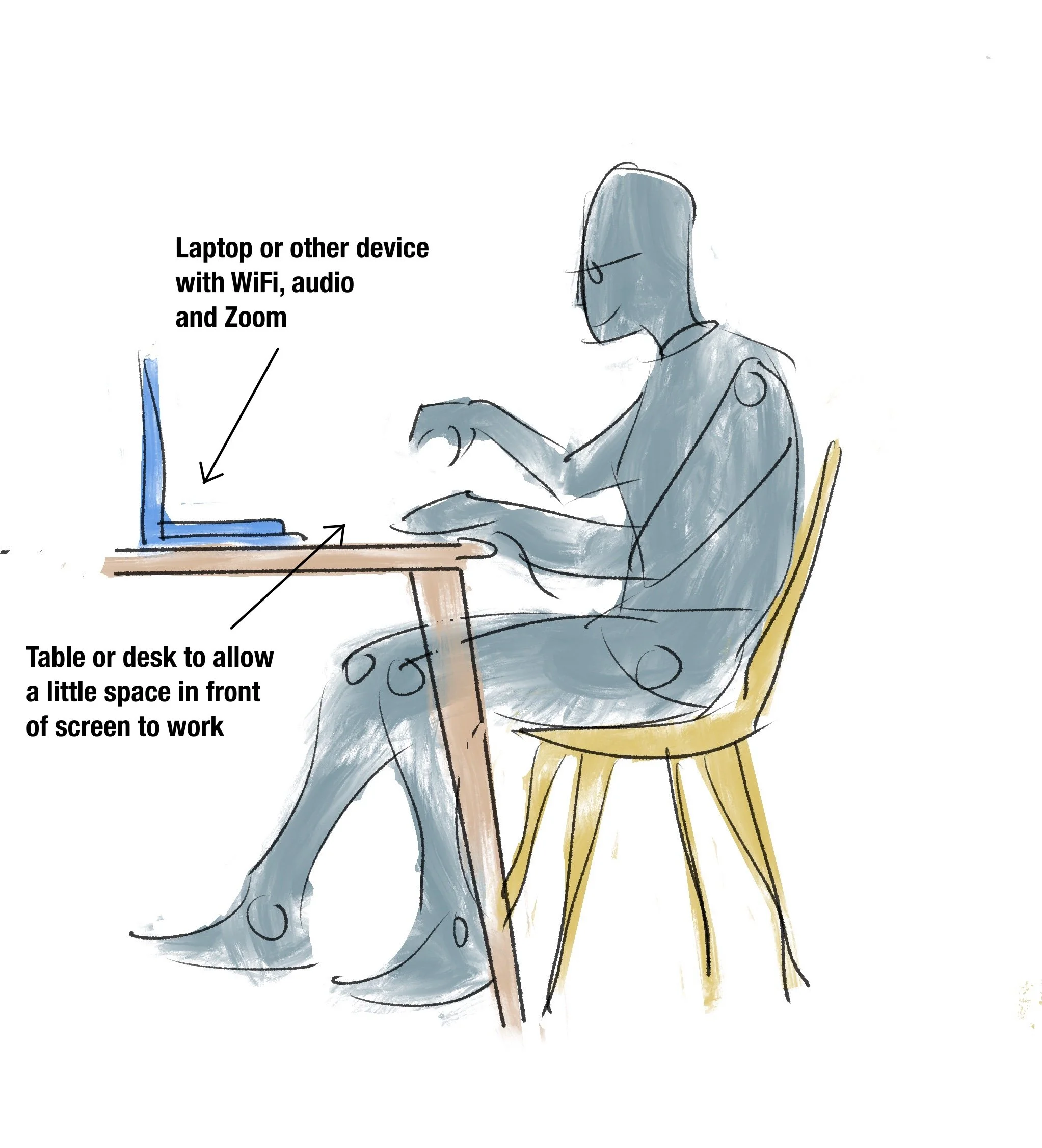 Reliable WiFi connection, video/mic access to Zoom, speaker or headphones. Please make sure your camera is setup so you can be seen when required too!